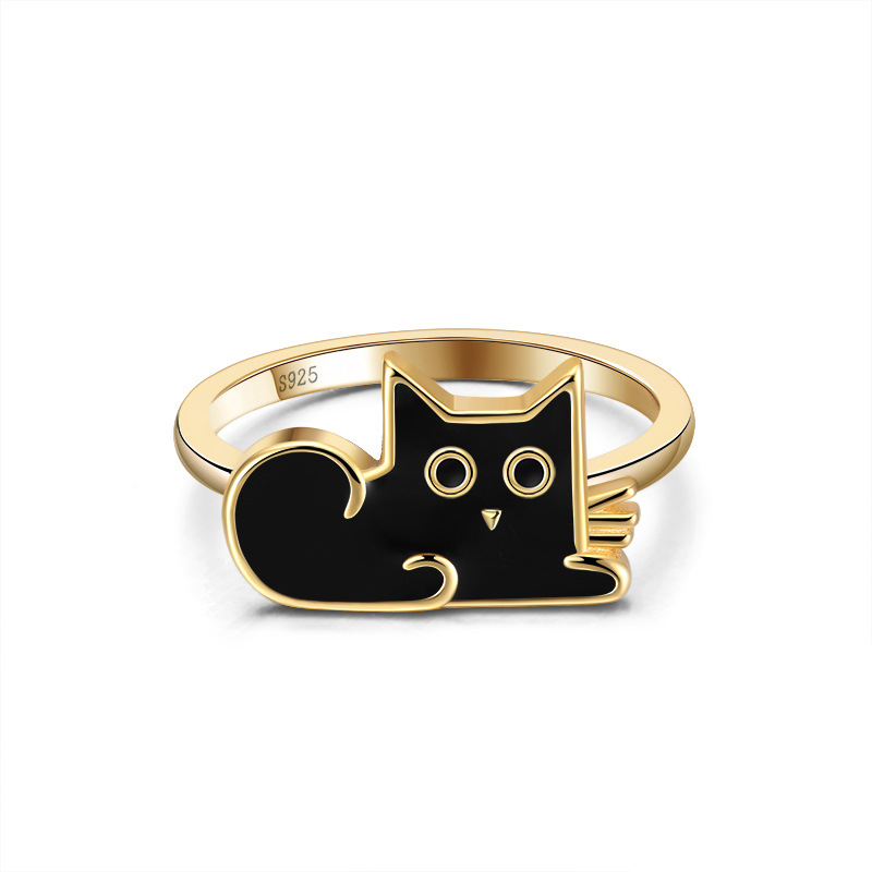Trendy black cat sterling silver ring